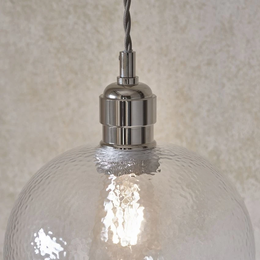 Be the first to review “Hexton Hammered Glass Pendant In Bright Nickel” Cancel reply